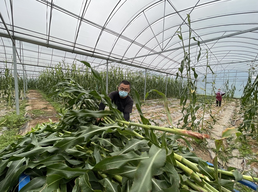 6月13日上午,记者在位于竖新镇竖南村的上海捷农蔬果种植专业合作社的芦穄种植基地里看到,一根根翠绿的芦穄,茎青节长高大挺拔,工作人员正在田地中忙碌地收割。