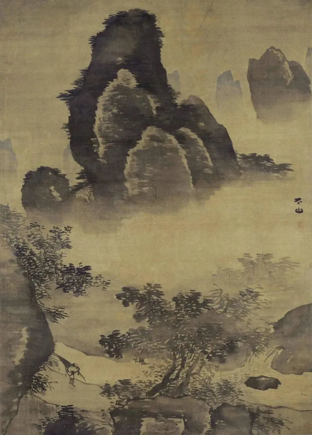 明·李士达《关山风雨图轴》