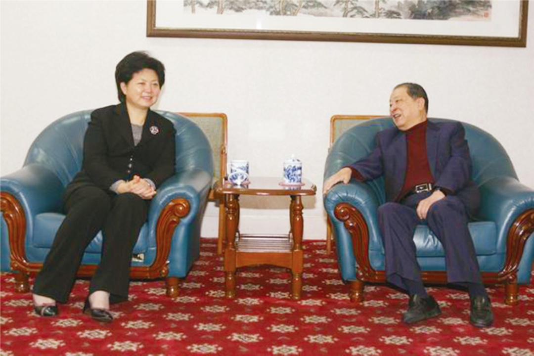 2006年,时任上海交通大学党委书记马德秀在徐汇校区浩然科技大楼贵宾室与胡法光(右一)会晤