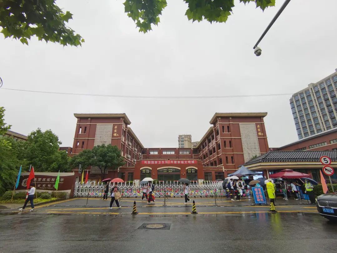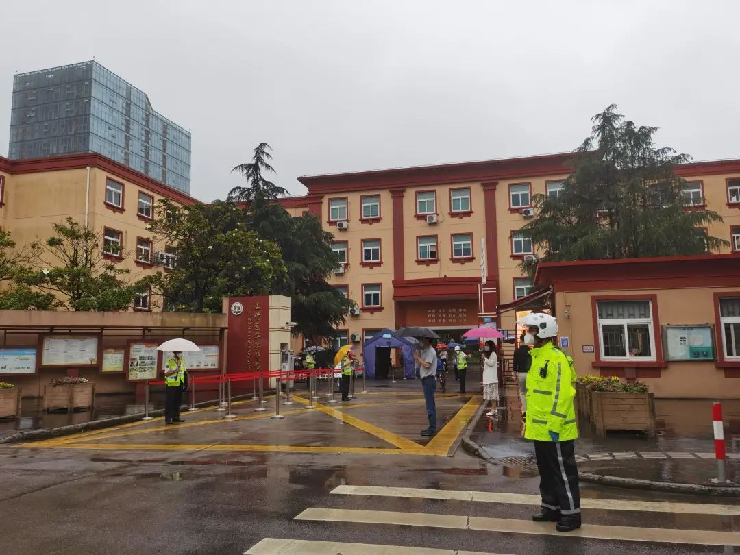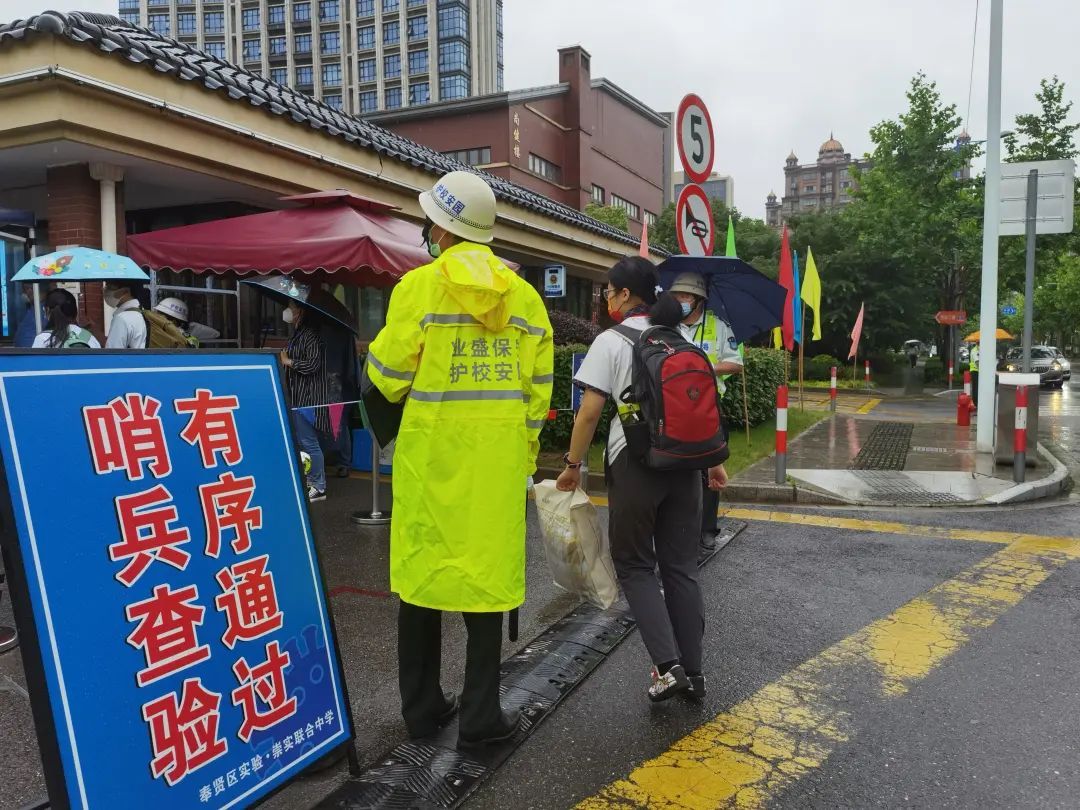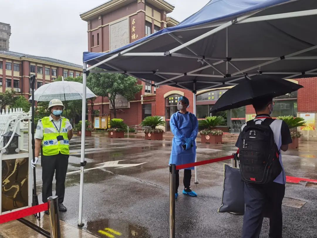 返校首日,阴雨绵绵,为应对此次初三学生复学返校,奉贤交警部门也第一时间安排警力。负责华亭学校的执勤交警,一早就来现场指挥来往车辆有序通行,确保校园周边交通顺畅。由于这所学校周边都是居民区,且处于城区解放路、新建路等几条主要道路附近,人流量较大。早高峰期间,校门口的建贤路也临时改为单向通行。交警部门及时安排了警力在路口疏导交通,学校安保人员也会提醒送孩子的家长及时驶离现场,确保校门口人流不聚集。