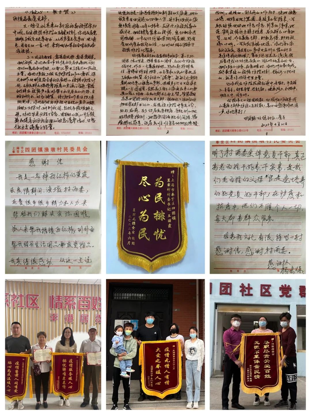 各村居收到的感谢信和锦旗