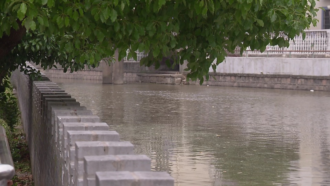 这是去年台风“烟花”来袭,廊下镇特色民居被淹的画面。虽然特色民居外围的堤坝标高3米8,但去年“烟花”来势凶猛,加之本身地势低洼以及邻省的泄洪压力较大等各种因素,导致受淹严重。为此,去年台风过后,廊下镇方面立即启动应急工程,在原本基础上,又将整个堤坝高度加高了一米。