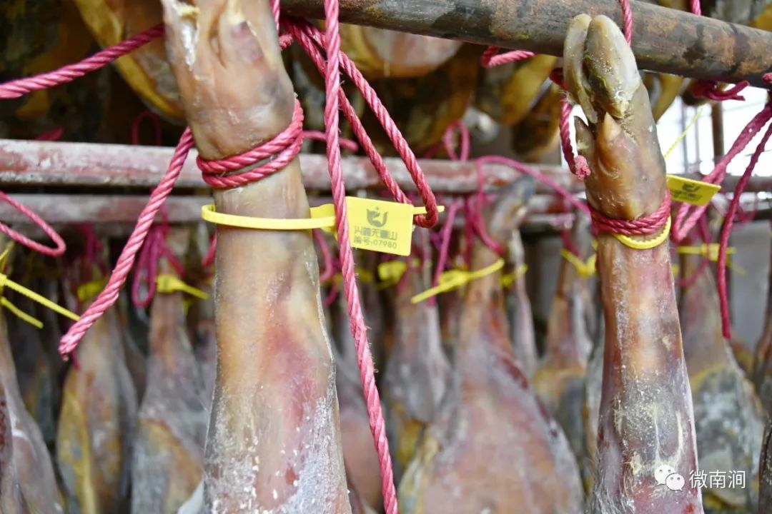无量山火腿是南涧有名的传统肉类腌制食品,是滇西火腿中的名品,因无量山得天独厚的气候环境,造就南涧无量山火腿的理想发酵环境。在宝华镇宝华村南涧县兴鑫无量山食品有限公司,一排排火腿、腊肉整齐地挂在横梁上,香气扑鼻。更香的,是群众们越过越火热的日子。
