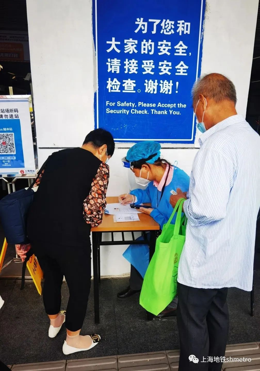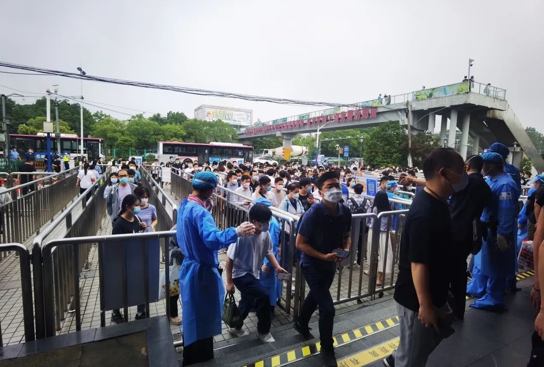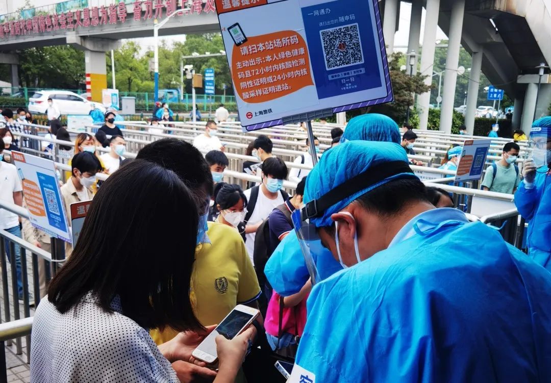 6月14日一早,车站启动前一天制定好的方案:调整早高峰绕行隔断设置,增加进站通道,缩短绕行距离,增设验码点和验码人员,同时由属地镇政府以及属地派出所的增援人员在外围进行先期的人流疏导,引导乘客适应新的站外绕行方式,同时提醒乘客准备好场所码或者“Metro大都会”乘车码做好进站准备。