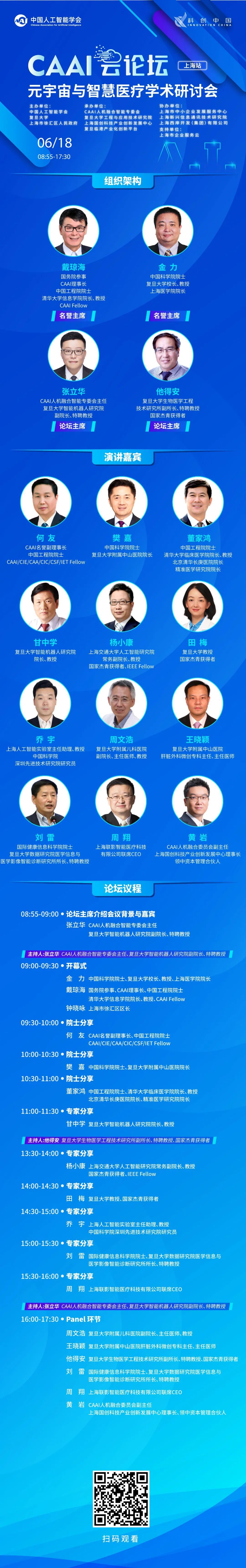 2022年6月18日,由中国人工智能学会(CAAI)、复旦大学、上海市徐汇区人民政府主办,CAAI人机融合智能专委会、复旦大学工程与应用技术研究院、 上海国创科技产业创新发展中心、复旦临港产业化创新平台承办,上海市中小企业发展服务中心、上海新兴信息通讯技术研究院协办,上海市企业服务云支持的“元宇宙与智慧医疗学术研讨会”将在线举办。
