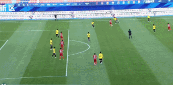 比赛开场,上海海港积极进攻,但一直未获得很好破门机会。34分32秒,上海海港获得左侧角球机会,球到门前,广州队门将没拿到,张琳芃左大腿蹭到后球出底线。