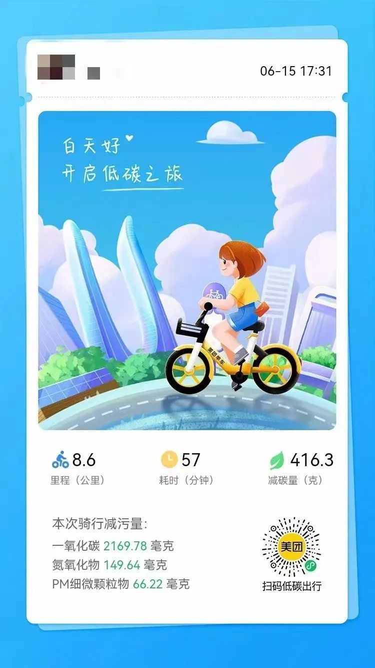 近年来,美团单车积极响应国家号召,坚持绿色发展理念,通过推行绿色设计、鼓励绿色出行、参与碳核算、促进废弃物循环利用等践行全生命周期绿色管理,助力低碳经济发展。