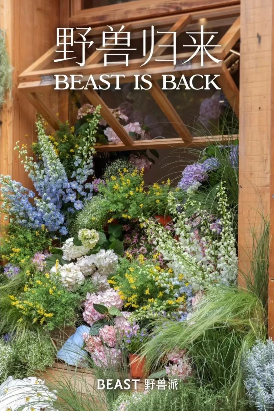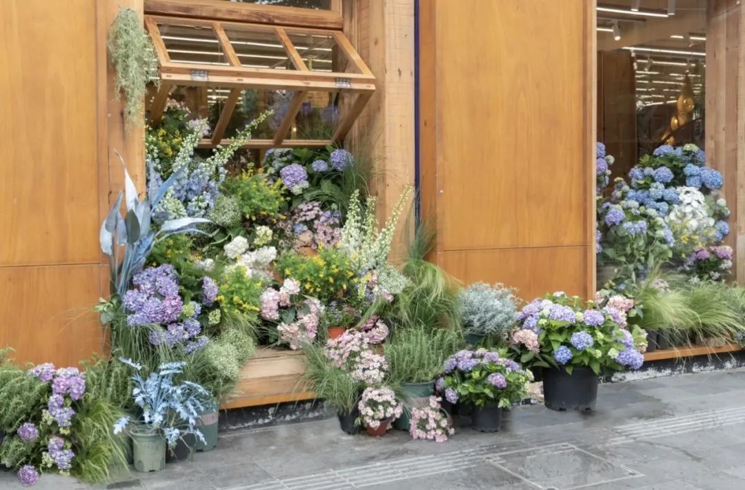 再相遇,野兽派门口“野蛮生长”出了一整个窗口的绣球,对面的台阶上也繁花似锦。