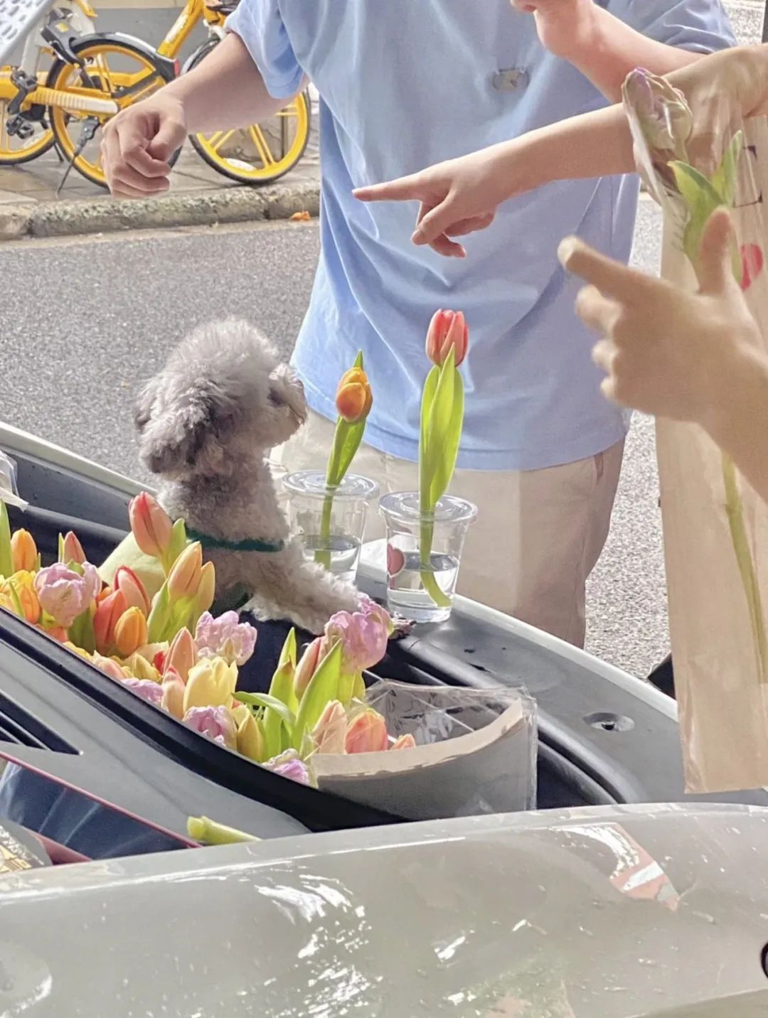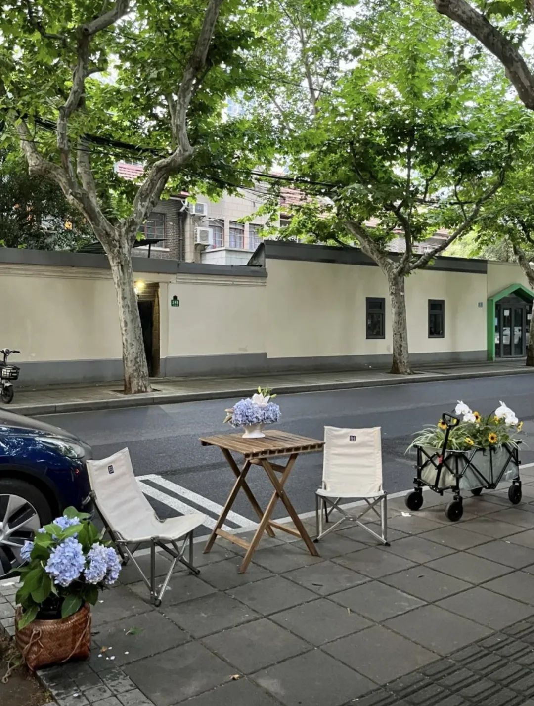 周末,还有人带着小狗在后备箱卖花,这里的好看与浪漫,让人忍不住感叹一句,“还得是安福路!”