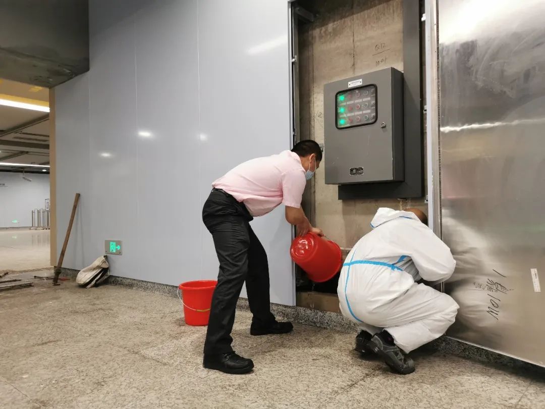 为确保车站防汛安全,保障后续复工复产顺利开展,江浦路站严阵以待,未雨绸缪。在车站防汛设备调试自查工作中,江浦路站的成瑜、沈迪对车站汛板锁、防汛板、集水泵等设施设备使用情况进行测试,同时联系物业及时排除安全隐患。