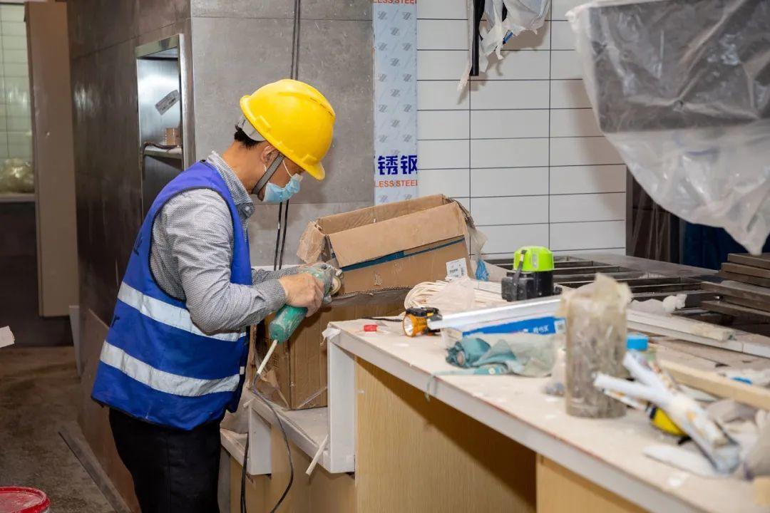 在天街的内部,“嗡嗡嗡”的电钻声、“叮叮当当”的安装声不绝于耳。铺地砖、装天花板……一派热火朝天、如火如荼的装修场面。进度最快的商户装修已接近尾声,其他商户也都紧张有序地进行着装修准备。