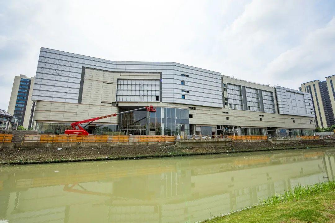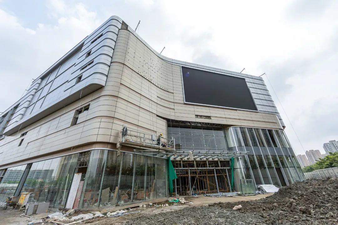 在龙湖金汇天街现场,工人们正在紧罗密鼓地施工中,整体来看商场的外部装修已经接近尾声。