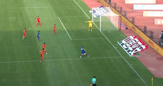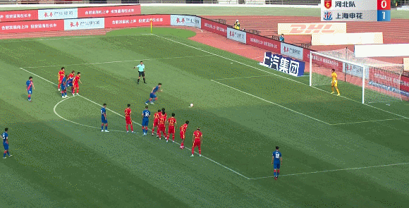补时阶段,河北队头球破门。