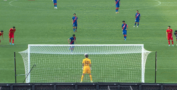 67分14秒,彭欣力主罚点球破门。