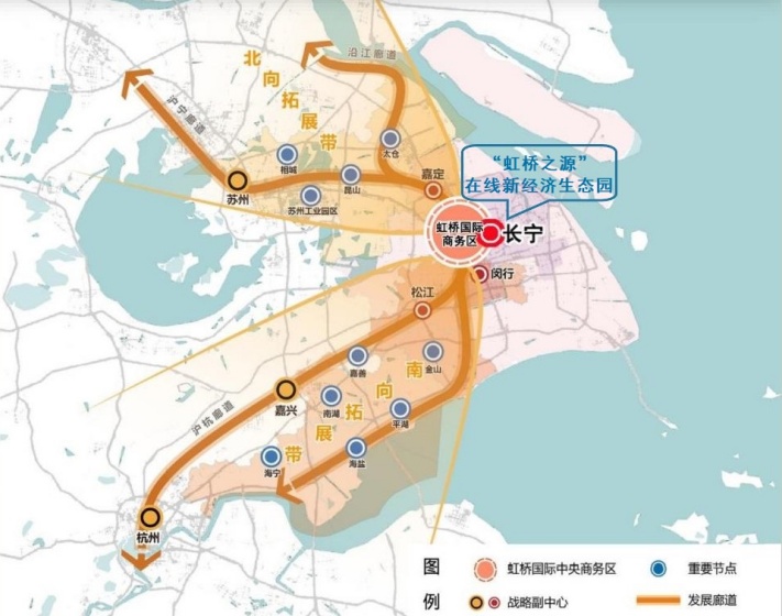 计划到2025年,将培育集聚10家以上在线新经济龙头企业、100家以上有影响力的在线新经济成长性企业、2000家以上在线新经济企业,打造10个以上在线新经济特色园中园、5个以上有显示度的在线新经济功能平台,在线新经济产业集群规模超过3000亿元,建设成为全国领先的在线新经济创新高地和数字经济总部集聚带,成为全国经济高质量发展和数字化转型的样板间。截至目前,科大讯飞人工智能项目、虹桥临空跨国公司(总部)科创园、容么么直播中心、机场集团“5G+数字孪生”项目、联影智慧医疗总部、宜家荟聚购物中心和东虹桥中心等重大项目已在全力推进中。