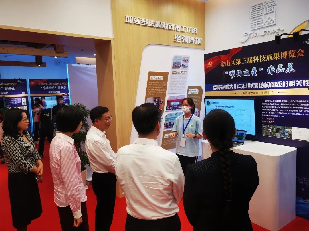 薛裕辰在区级科技博览会介绍自己的研究成果