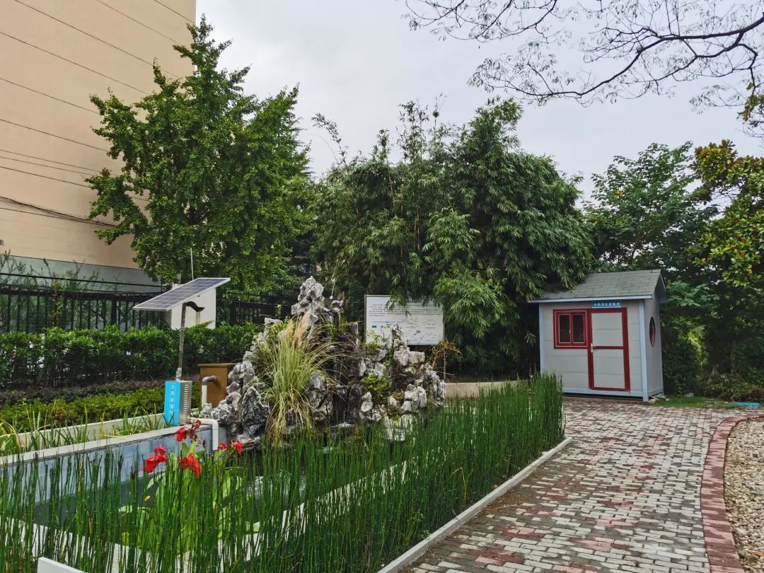 一个简单的生态可以如何构成?生态长廊就能给你答案。这里“鱼类——植物——水”和谐共生的生态画面,源于“海绵城市”的构想。“我们在打造了江南园林风情的同时,也借此表达了‘生态’‘净水’等主题。”学校老师介绍。