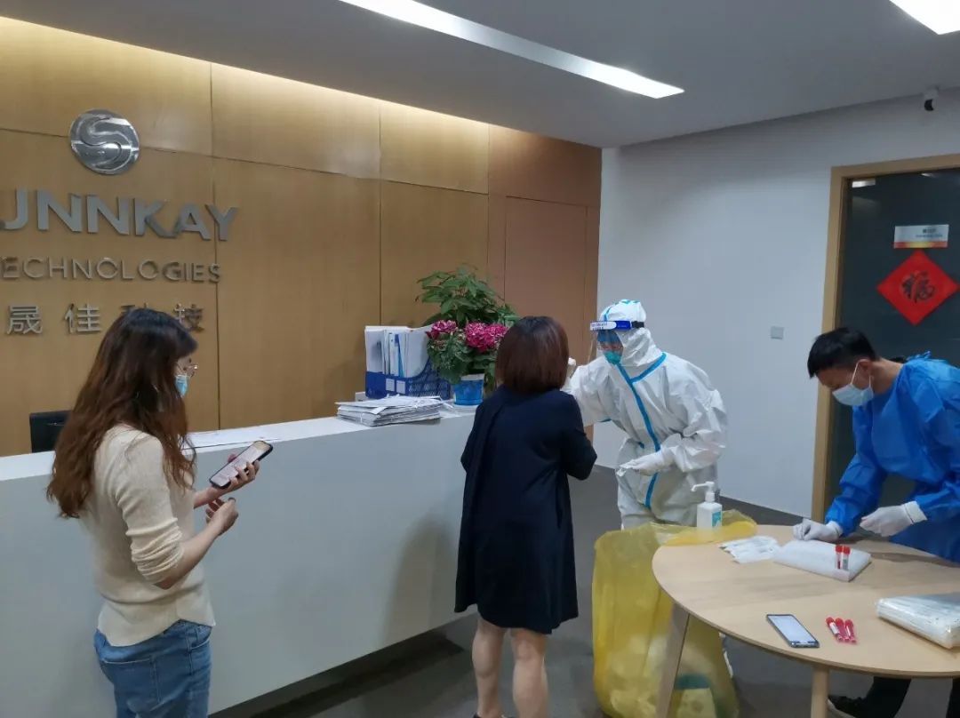 经过前期走访调研,了解企业核酸采样需求后,月新园区第一时间请示镇政府,取得常态化核酸采样资格,并设置月新智慧产业园常态化采样点。同时,园区紧急成立“上门检测”小组,设立5支流动小分队,为园区企业提供服务。