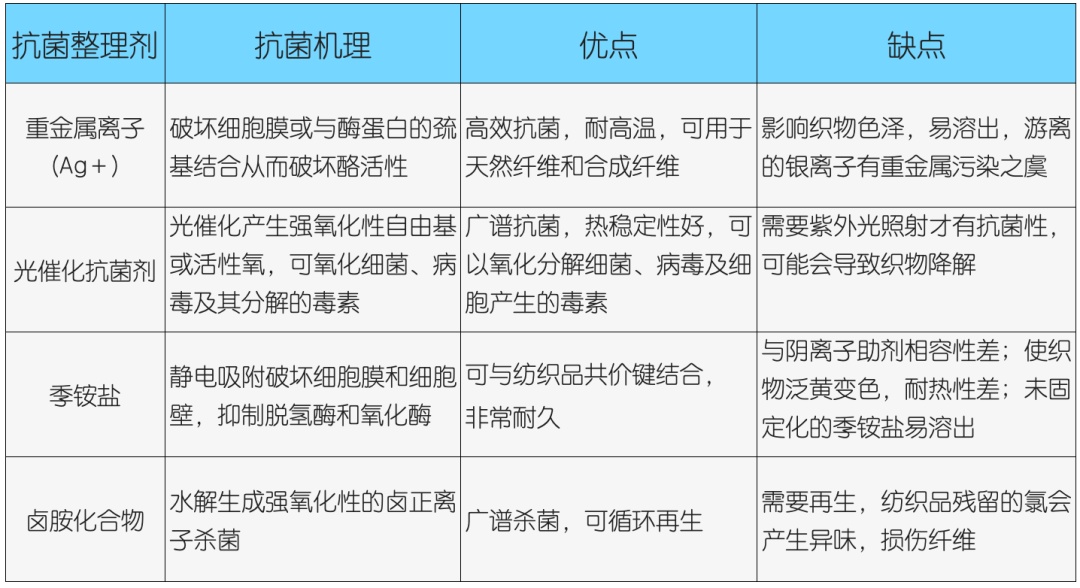 较常用的抗菌整理剂的抗菌机理及其优缺点如下