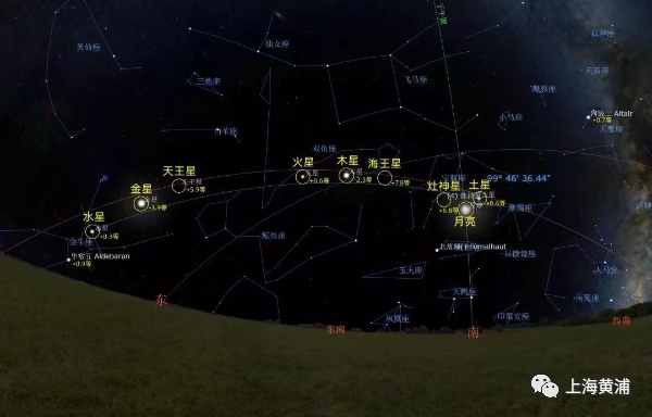 上海天文台佘山科普教育基地主任、上海天文学会秘书长汤海明介绍,“七龙珠”里,金星、木星、火星、土星的观测相对容易,肉眼即可看到;16日前后,水星运行至西大距的位置上,是今年又一次观赏的好机会,水星虽然也亮,但升出地面时,已被太阳透过大气层散射的光线所掩盖,需借助望远镜才能一睹真容;天王星与海王星的观测则更难,需借助观测设备,且具有更高的辨别难度。