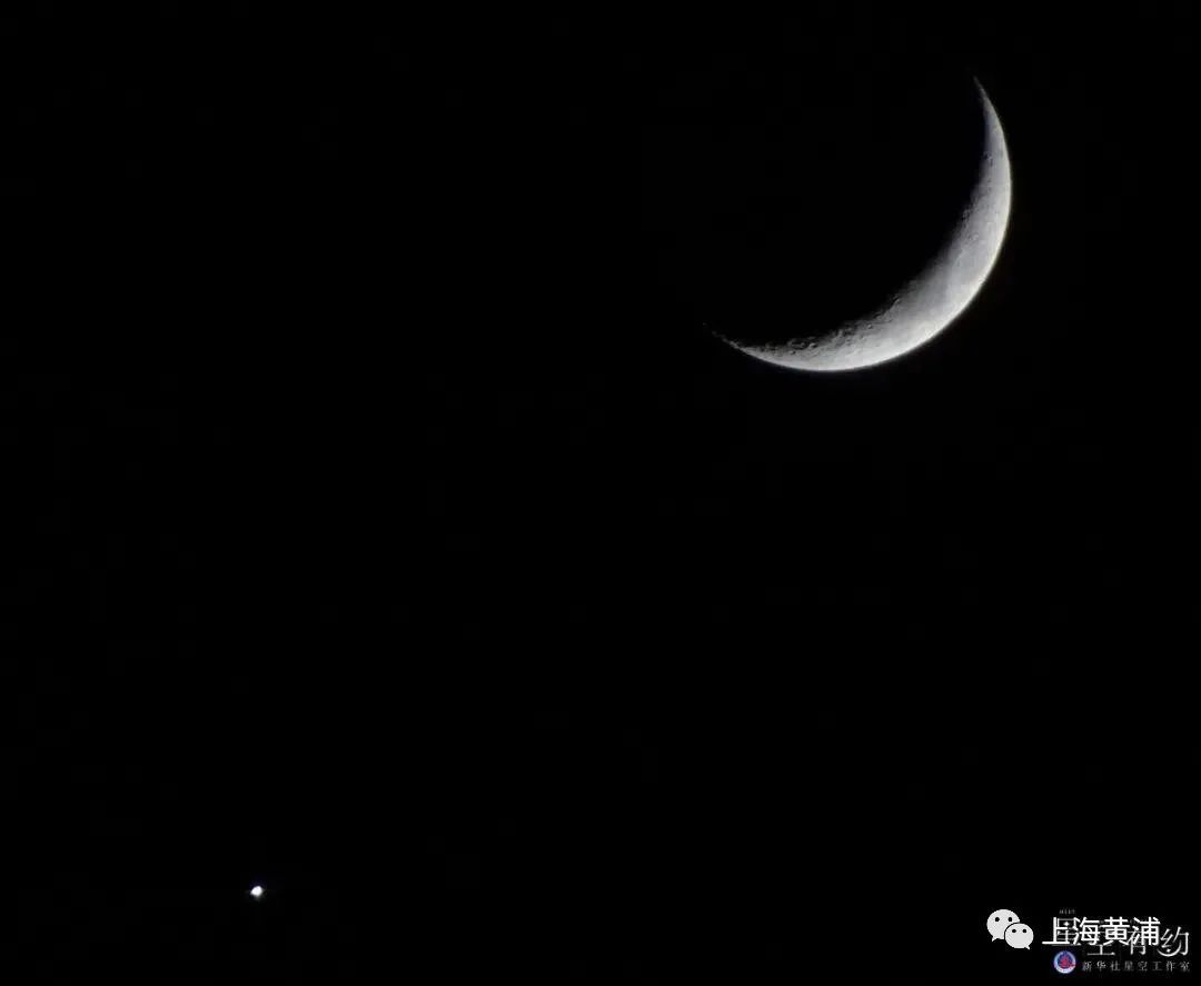 这是2017年1月2日辽宁大连上空的“金星合月”。当日是农历腊月初五,傍晚时分金星与月亮近距离相会,上演“金星合月”天象