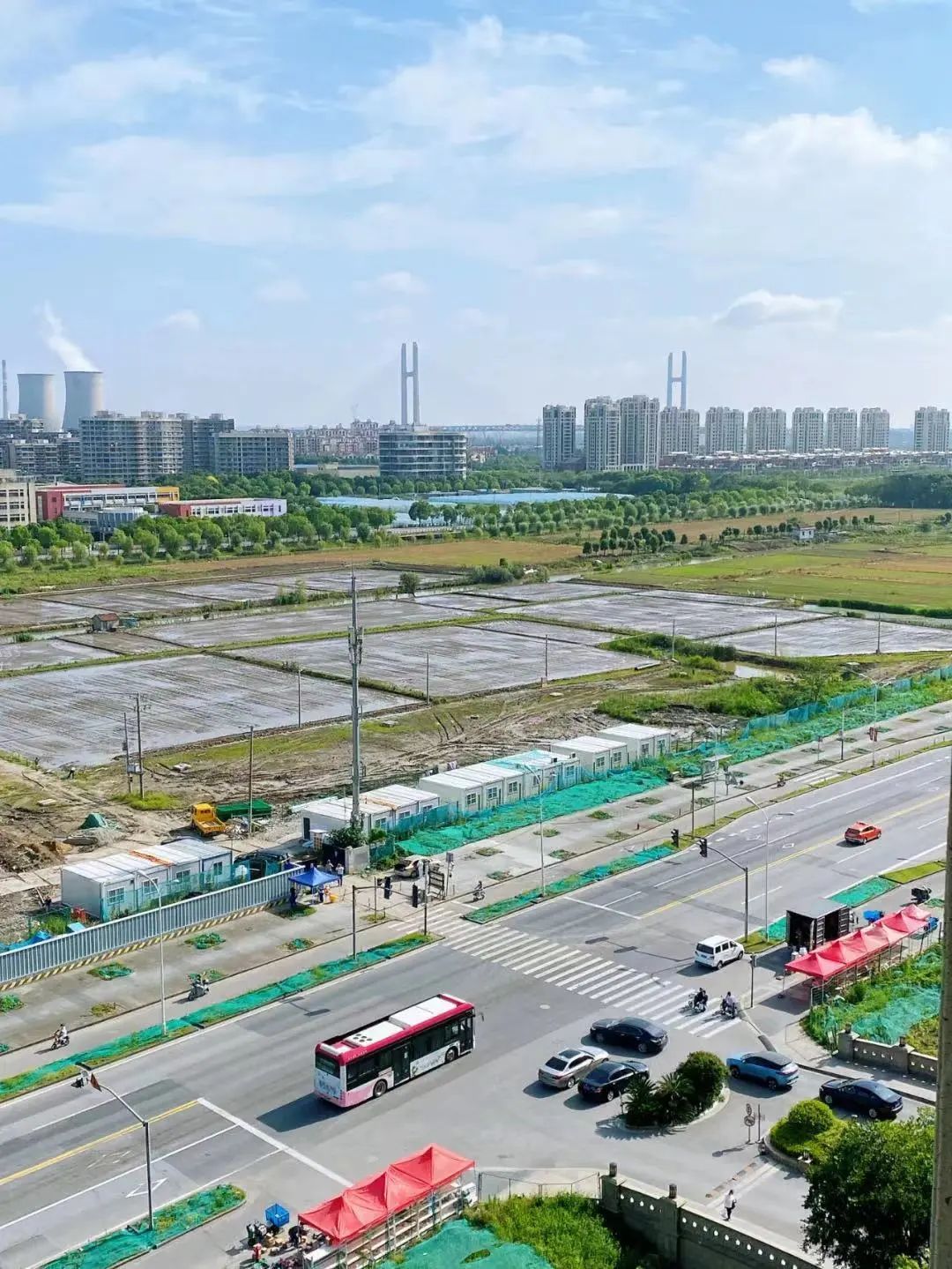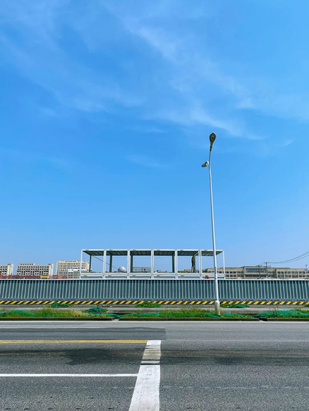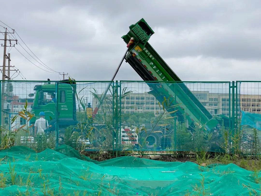 据介绍,6月2日这片工地上就开始有大卡车进出,倾倒渣土、平整土地,正是在为建筑工棚搭建做准备。几天功夫,白色的工棚就出现在眼前。“斑马线西侧昨晚还是工棚的架子,今天早上起来看到已经变成两层了!而且楼梯也装好了!”住在附近小区的居民说,看着大吊车一点一点将各种材料‘叼’起来、放下去,就感到建设的速度在加快!”