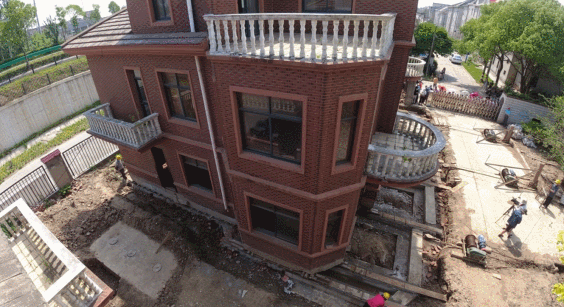 据介绍,为了确保厂房平移工程的顺利实施,工人们早在3个月前就已经开始做准备,先将建筑物底部掏空,然后将建筑物撑起,在底部铺上轨道,最后用推进装置将房屋一点一点地沿着轨道推向目的地。