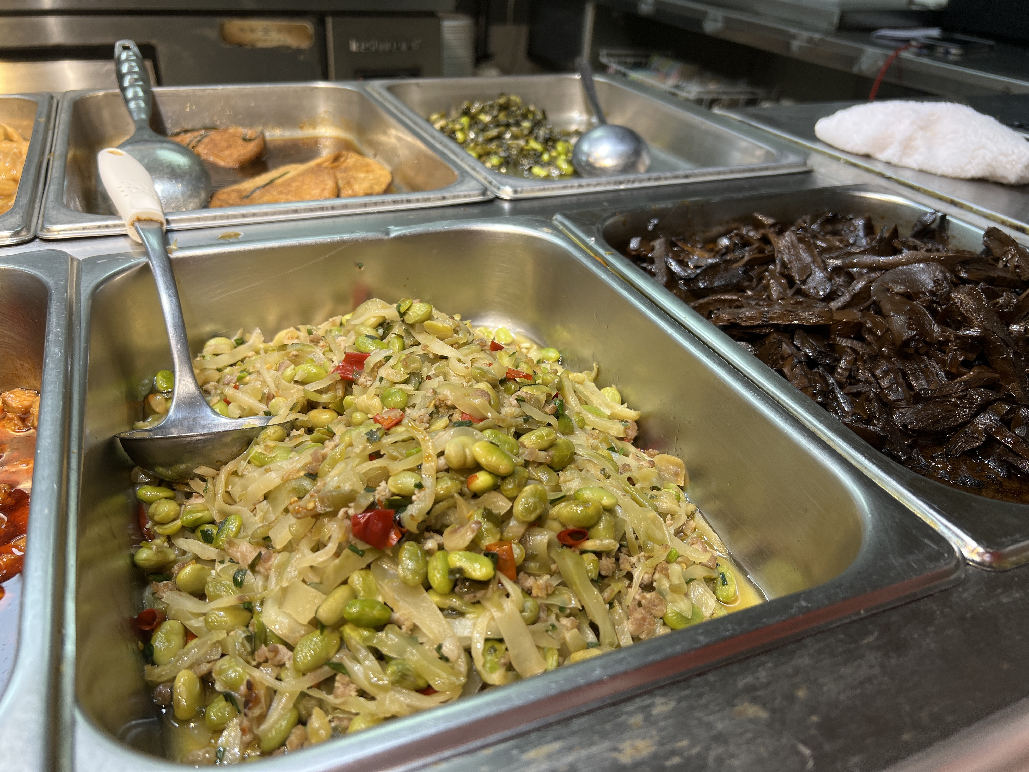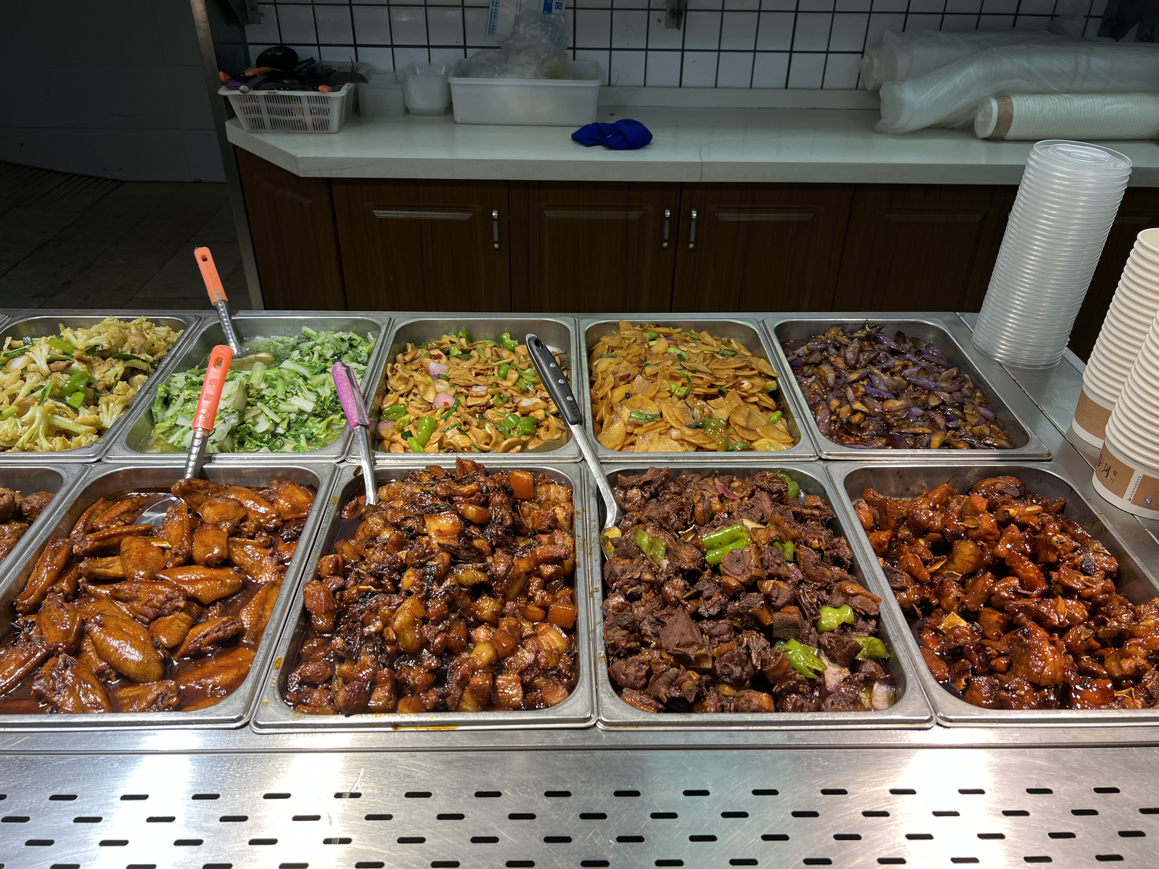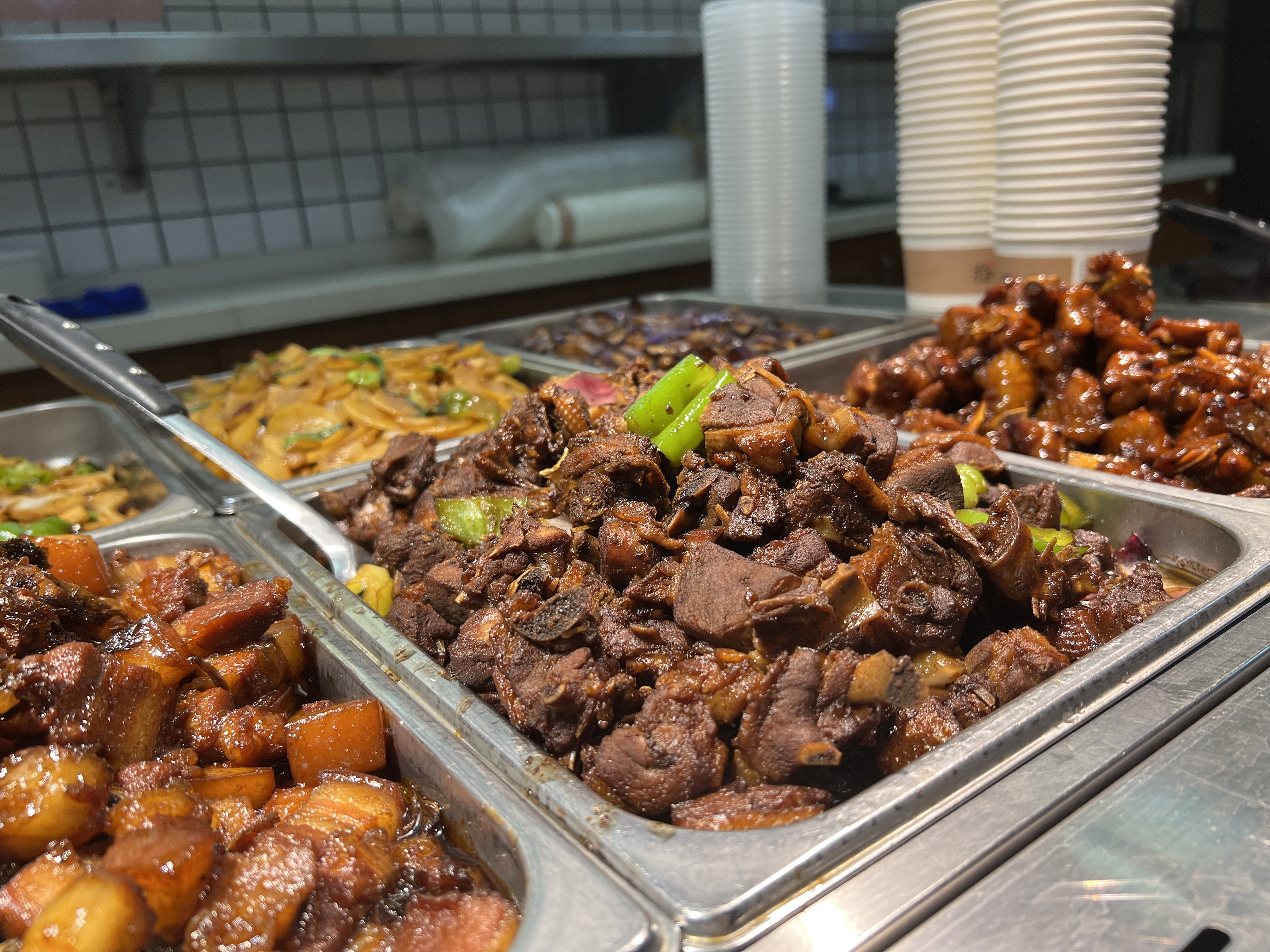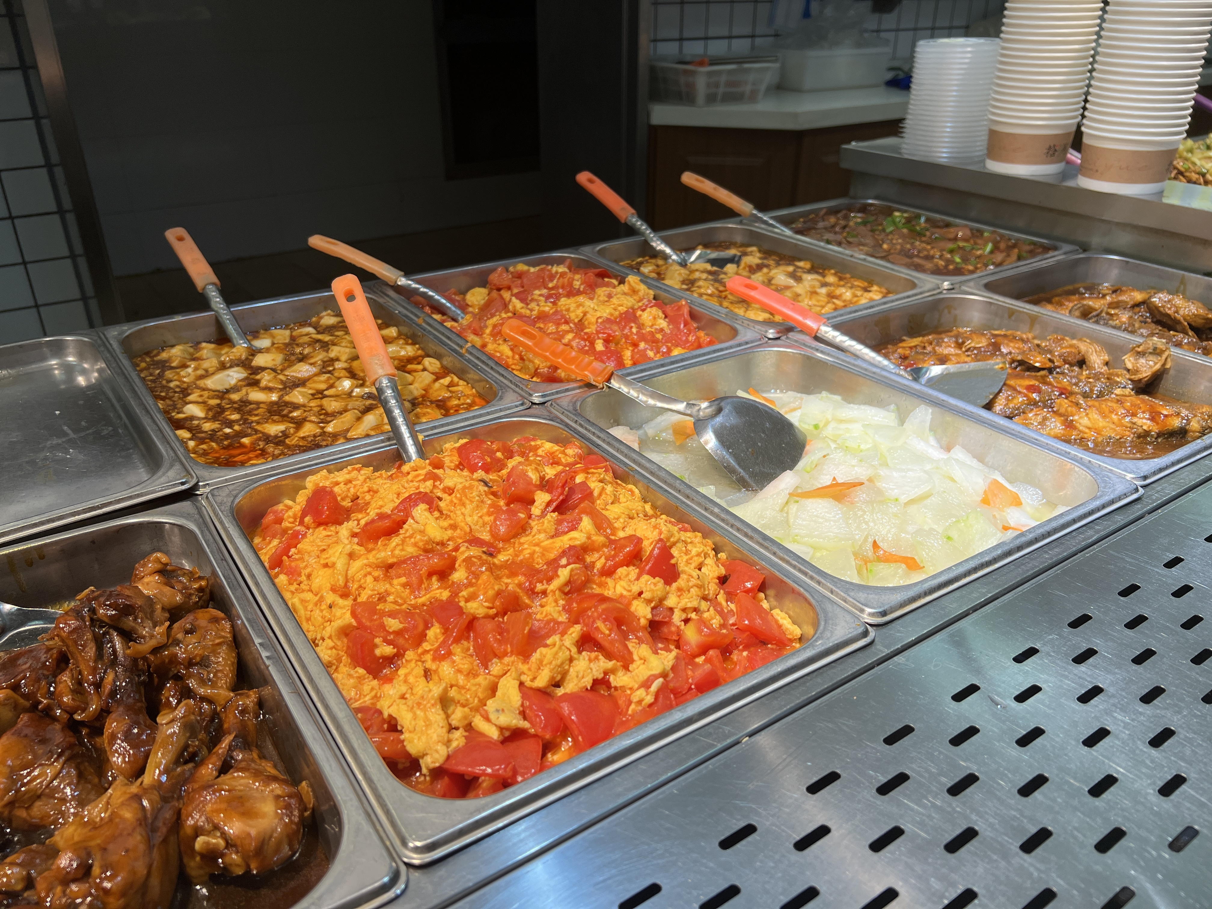 据介绍,为全力以赴保障园区白领及周边居民餐饮需求,拾月餐厅增补人手并认真研究设计菜品搭配。“现在白领们或周围居民来店会有更多的选择,”据拾月餐厅店长徐旺介绍,目前,店内每日中午可提供素菜12种、荤菜12种,近25种的丰富菜品,“其中我们也着重保留白领们比较爱吃的红烧肉、红烧小排,并且搭配时令蔬菜,做到一周之内菜品不重样。”