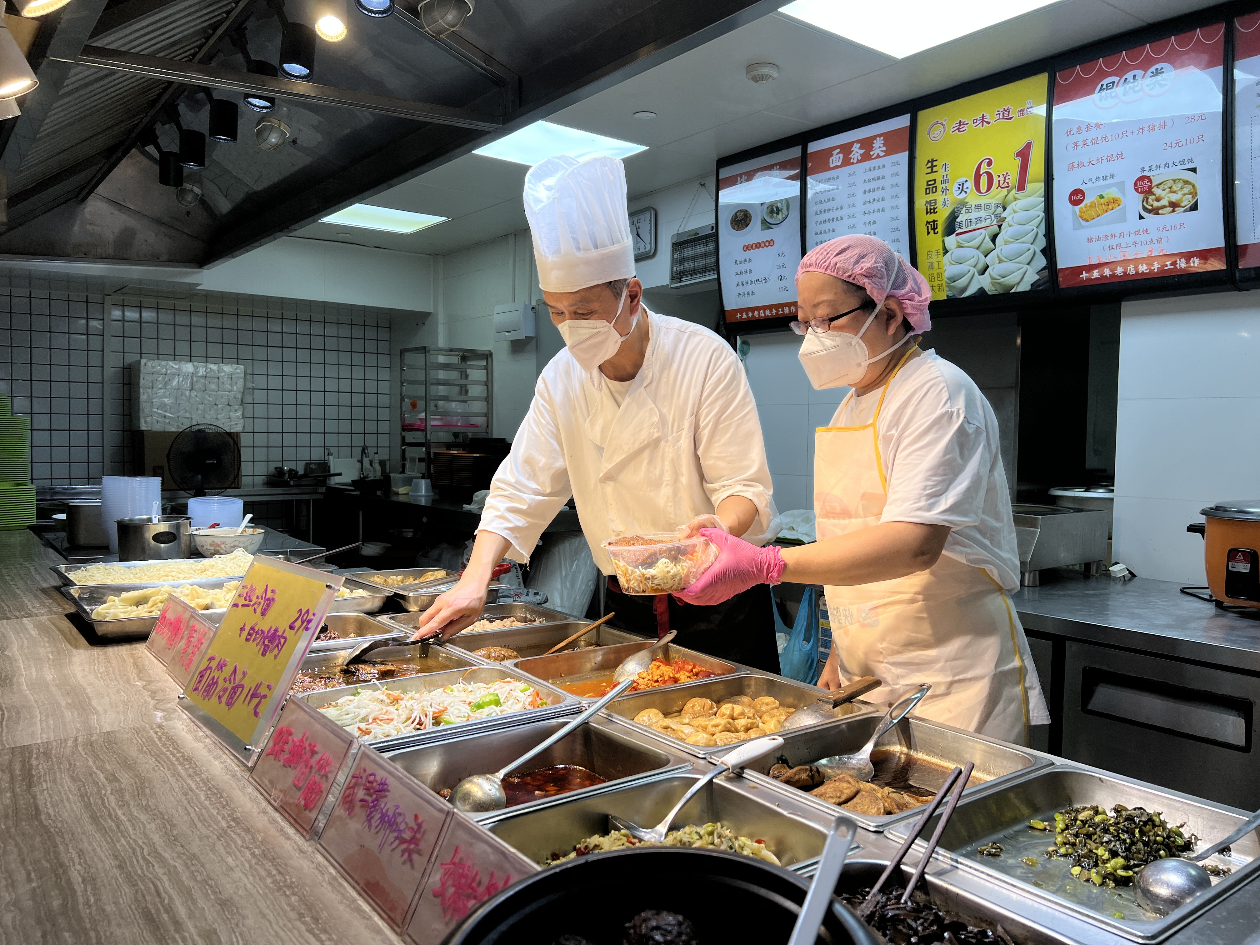 t“夏天吃冷面,馋这口馋了很久了,最近这几天更是不同的浇头组合搭配。”在本帮面档口备餐区等待的何先生说道,同时告诉记者,不仅他自己喜欢吃,公司同事也是纷纷拜托他打包回去,“因为现在不允许堂食,所以我们同事几人一般都是提前一天在餐厅微信上面预约,这样排队等候的时间少了,比较方便。”