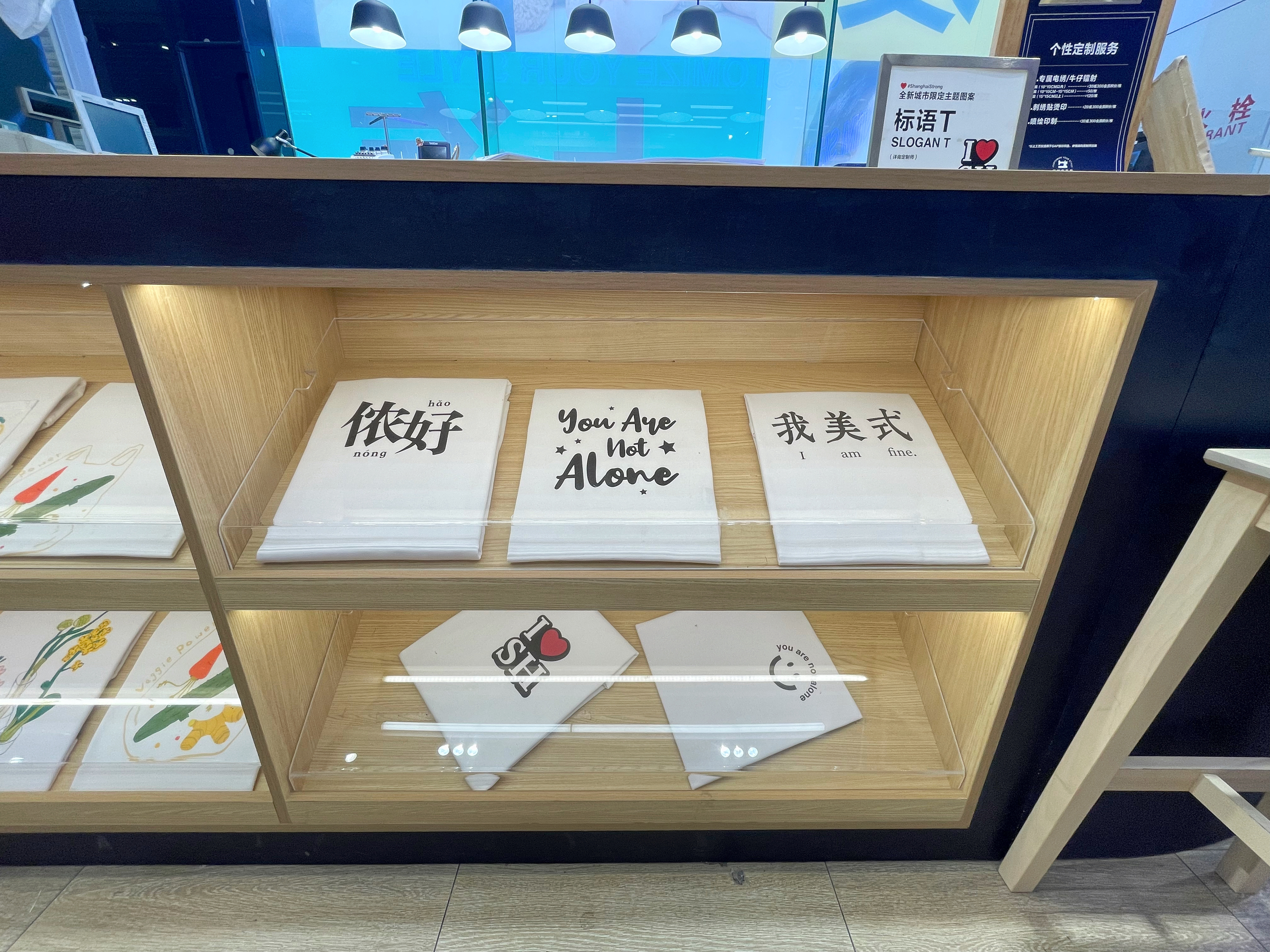 在定制区,顾客可以体验定制独特T恤。以“蔬菜”为灵感的四大主题定制图案系列可供选择,不管是幽默的蔬菜角色图案,有趣的蔬菜建筑,可观的蔬菜花还是奇妙的蔬菜动物,都可以选择喷绘形式,分享和蔬菜相关的故事、表达自己的独特理解,打造属于自己独一无二的风格。