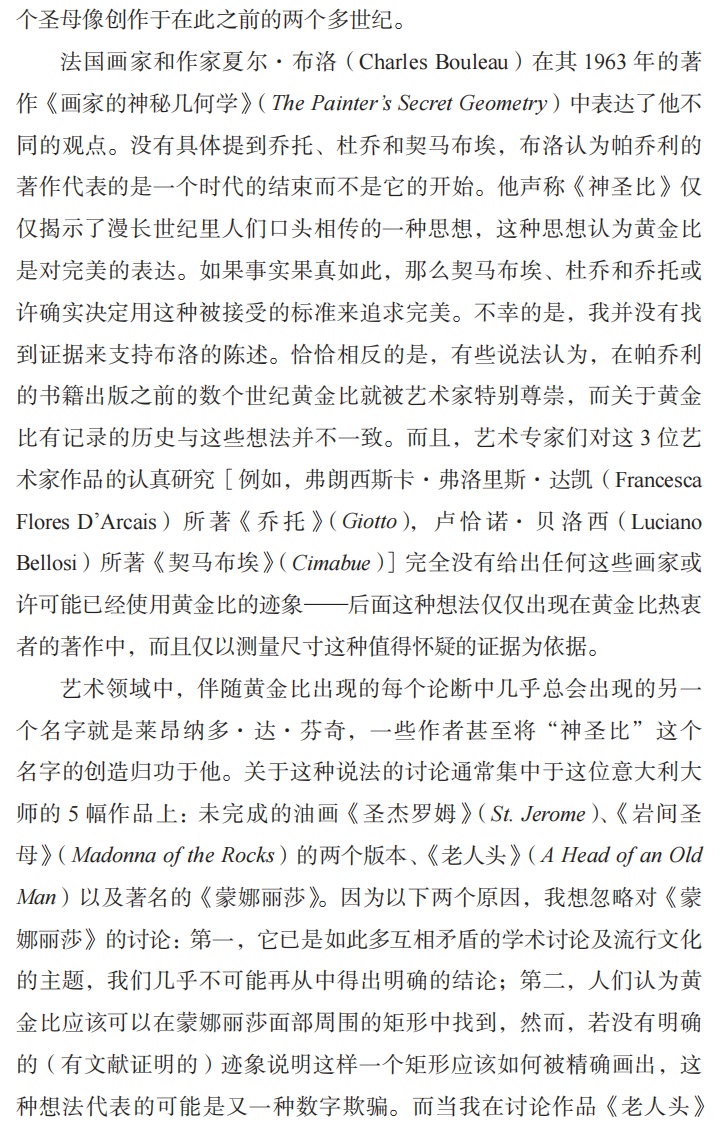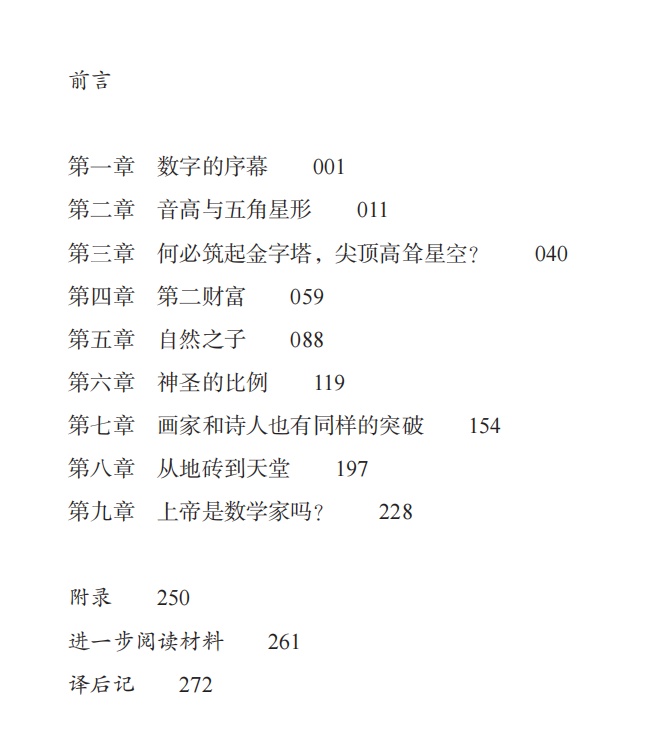 现在,有一本好书叫《黄金比——大自然及人类文化中的一个神秘常数》,是一本获得国际高度评价的关于数学和艺术的科普大作,作者是天体物理学家、著名科普作家利维奥,他因此书获得了毕达哥拉斯奖和皮亚诺奖。在这本代表作中,利维奥通过旁征博引及大量精彩图片向人们展示,数学如何从植物等自然物中受到启示,黄金比(以及与之密切相关的斐波那契数列)如何出现在数学史中,解释了西方数学与设计、艺术等领域几千年意想不到的联系——无论是建筑、绘画、工业设计乃至心理学、文学、音乐,还是科学(几何、分形、物理),甚至包括股票市场;当然,也提及一些不科学的臆测,幽默风趣的小故事小插曲。