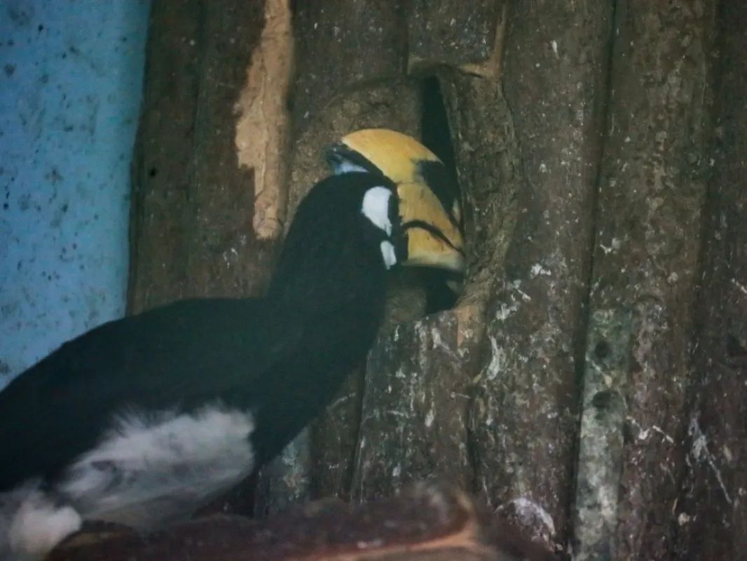 “斑爸”和它的配偶“斑妈”生活在上海动物园犀鸟展区,每年繁殖季,铲屎官都会提前为它们准备好人工树洞,尽可能模拟野外的环境,让恩爱夫妻可以安心在这里繁衍后代。