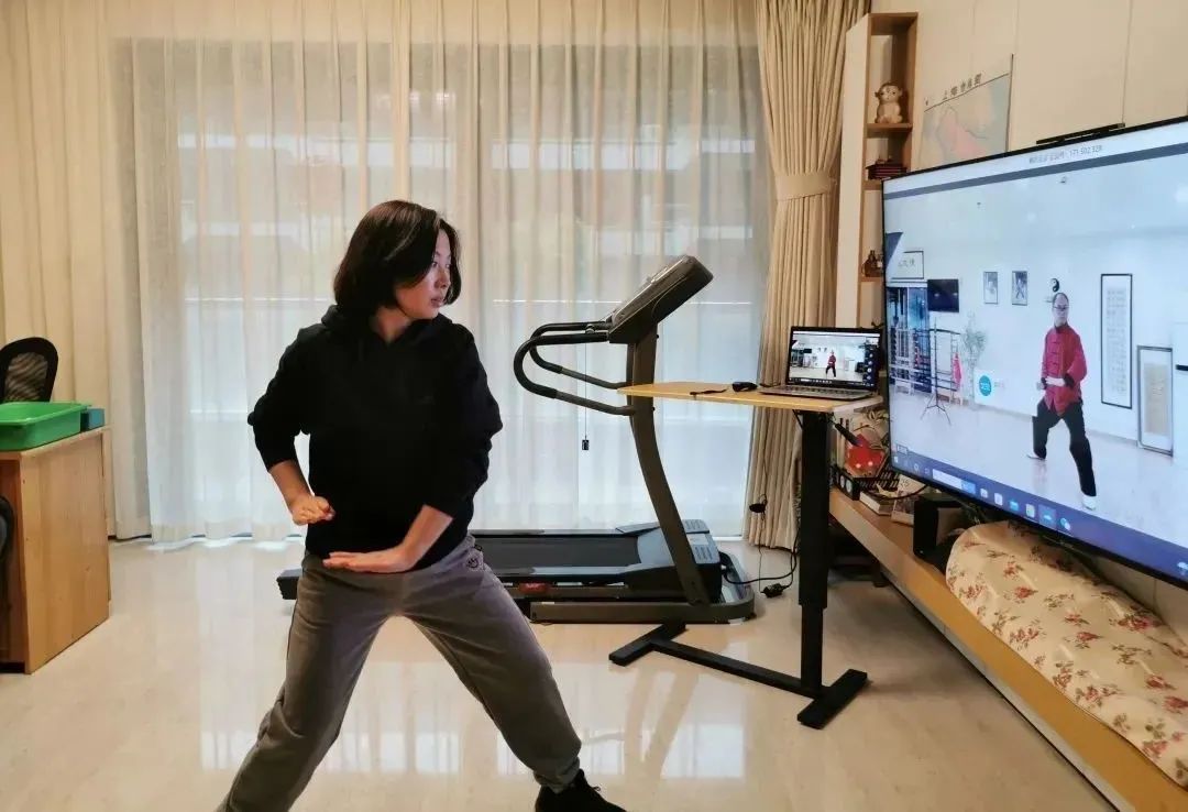 在疫情期间,社区居民居家锻炼的需求日渐增长。学校太极拳教师陈亮每周五为学员讲授在家就能练习的太极拳,活动身体的同时放松精神,舒缓由疫情带来的紧张情绪。