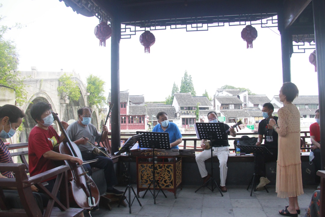 江南文化艺术是游客青睐朱家角古镇的重要因素。位于放生桥旁的亭子内,市民游客正津津有味地享受戏曲盛宴。一曲曲悠扬激昂的沪剧演唱、一首首耳熟能详的田山歌表演,让来往的市民游客忍不住停下脚步,陶醉在戏曲的海洋里。这些演奏者来自珠溪文艺团队,据团长徐银珠介绍,节假日期间,剧团会安排10余人从上午9点表演到下午两三点,弘扬朱家角古镇的文化内涵。不仅如此,水波荡漾的漕港河上,一黄一红两艘摇快船你争我赶,蛟龙似箭般竞逐漕港河,围观的市民游客大饱眼福,享受这份江南水乡的动感魅力。