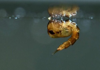 在温暖的季节里,卵大约三天就可孵化为幼虫——孑孓,并开始吃水里生长的极小的微生物或者原生动物等。孑孓经过蜕皮,最后停止吃东西、活动减少而变为蛹。大约两三天后,蛹在水面蜕去皮而羽化为成虫飞出来,这就是常见的蚊子。