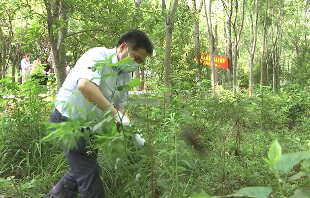 庙镇种种园林作为此次整治活动的区域之一,记者看到,工作人员将“加拿大一枝黄花”的根茎拔出,再分别装入袋子中,所有拔下的根茎后续将全部进行焚烧处理。
