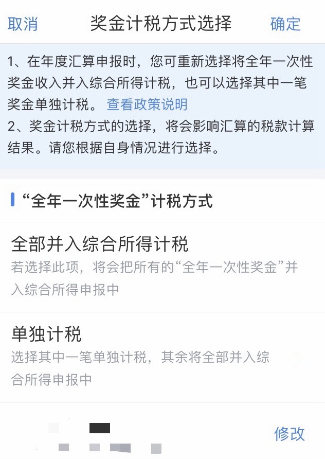 值得注意的是,“全年一次性奖金”计税方式可以选择全部并入综合所得计税或是单独计税,不同选择也可能导致汇算结果不一致。
