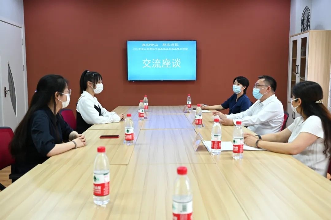 直播活动结束后,区领导与企业代表、学生代表一起座谈,面对面了解企业复工复产阶段的困难需求、倾听毕业生代表们对新形势下就业创业的意见想法。