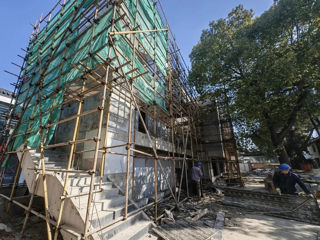 金石文化馆的“邻居”——申报文化空间也已完成主体结构施工,目前在进行内部装修及广场改建。