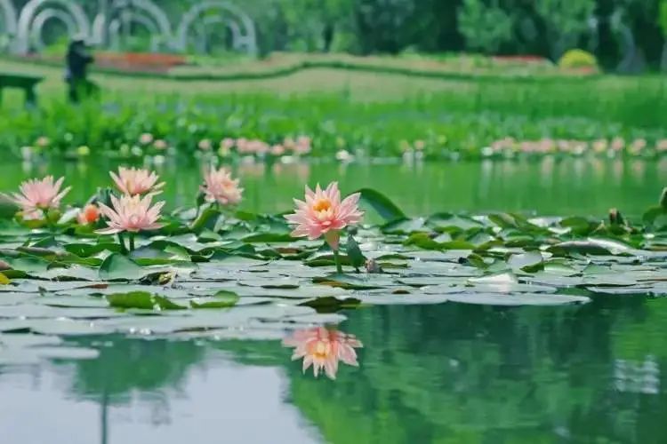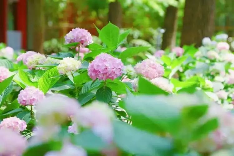 正值绣球季,月季园也双叒叒开花了,进入花季的睡莲池被网友誉为“莫奈花园”。