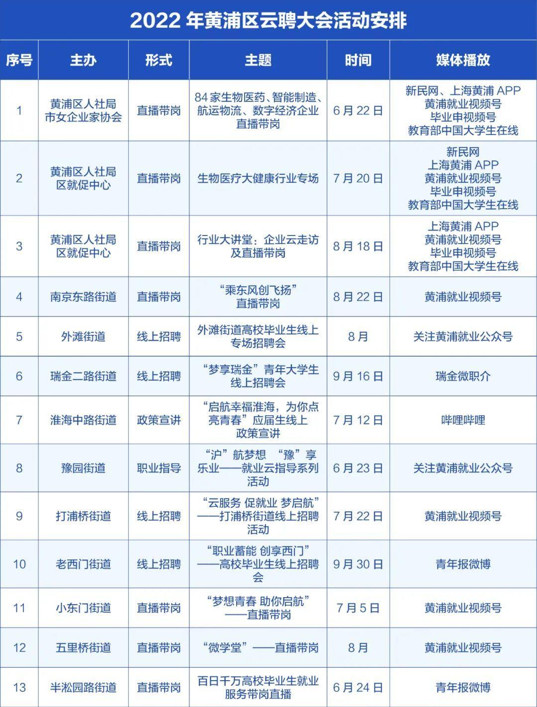 为贯彻落实国家和本市关于高校毕业生就业工作的决策部署,积极做好疫情防控常态化条件下高校毕业生就业工作,助力企业复工复产,做优黄浦区“高校毕业生就业创业服务季”工作品牌,黄浦区举办首场“云享服务 创就黄浦”云聘大会高校毕业生专场线上招聘。本次云聘大会重点围绕辖区内重点行业开展急需紧缺人才带岗直播,汇集了84家用人单位参会,行业涵盖生物医药、智能制造、航运物流、数字经济等,共发布198个职位,提供用人需求数1182个,更有4家企业代表亲临直播间,超多招聘干货,职等你来!