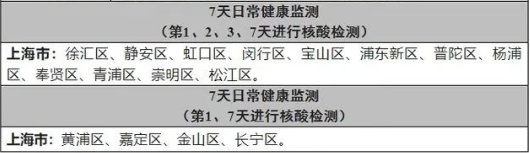 被定义为低风险地区的长宁、普陀、嘉定、金山四个区则要求“3天居家+4天日常健康监测”。
