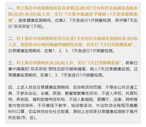 近日,安徽调整上海来(回)皖人员健康管理措施。安徽省新冠肺炎疫情防控应急综合指挥部办公室,已经发布关于优化调整上海来(回)皖人员健康管理措施的通知。