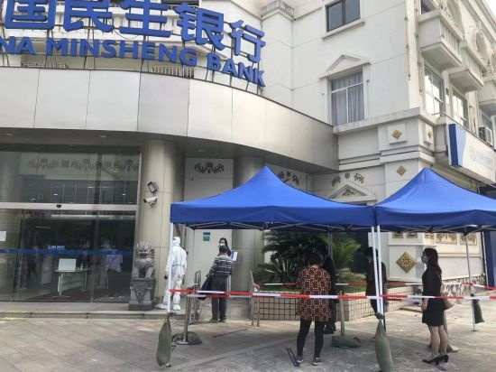 民生银行上海分行各支行在恢复营业前,对网点各区域进行全面消杀,为复工复产做了充足准备,统筹安排各项疫情防控工作,确保为客户提供安全环境,张贴场所码、安装“数字哨兵”,严格落实“一戴三查”客户查验工作,全力保障居民现金存取服务。