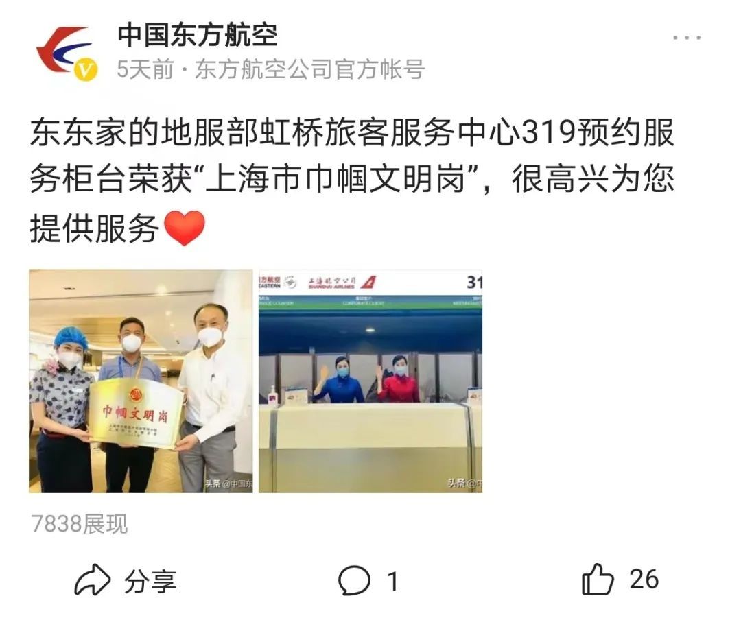 东航头条号共发布18期内容,总流量达15万。以诚待客,东航客舱“凌燕”入选上海品牌卓越榜单;助力旅客温馨出行,晨曦朝露去,披星戴月归是无数东航人的日常;东航地服部虹桥旅客服务中心319预约服务柜台荣获“上海市巾帼文明岗”,贴心服务存在每位旅客身边。