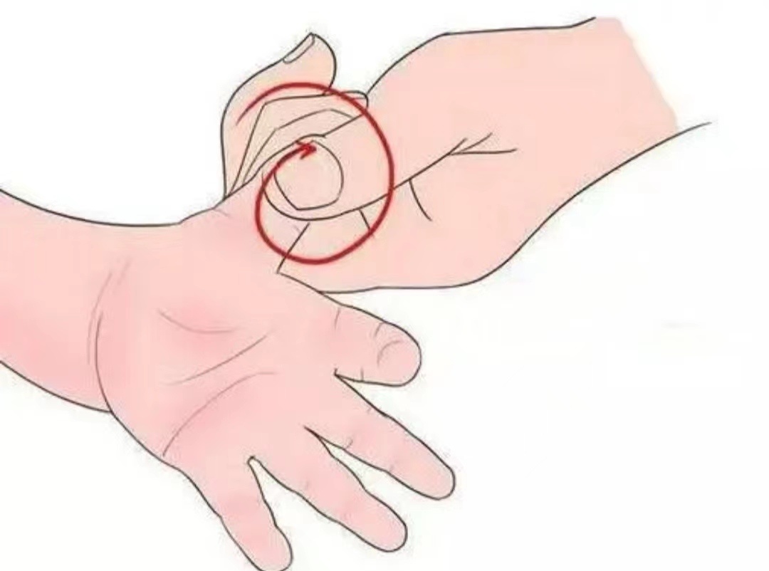 补大肠的操作方法:术者一手持小儿食指以固定,另一手以拇指螺纹面由小儿食指尖直推向虎口100~500次。具有涩肠固脱,温中止泻的作用。
