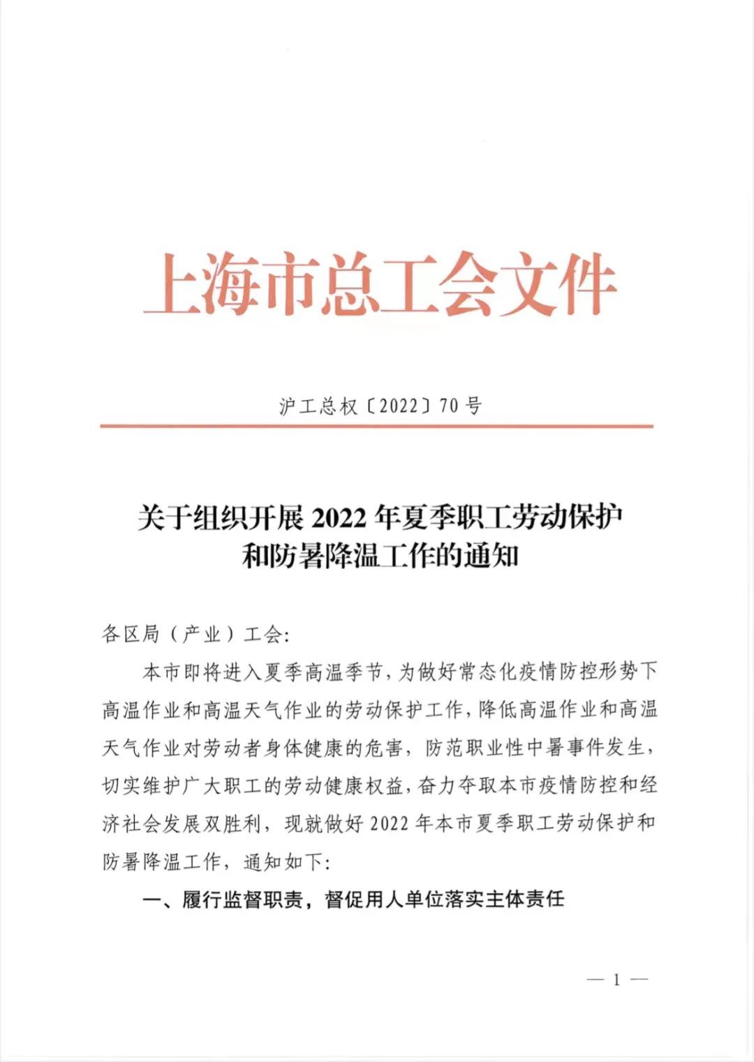 市总工会印发《关于组织开展2022年夏季职工劳动保护和防暑降温工作的通知》,要求做好常态化疫情防控形势下高温作业和高温天气作业的劳动保护工作,降低高温作业和高温天气作业对劳动者身体健康的危害,防范职业性中暑事件发生。《通知》内容包括履行工会监督检查职责、推动改善工作环境和条件、合理安排工作岗位和时间等8个要点。详见↓