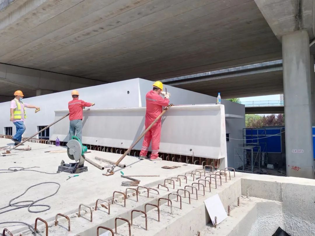 在受疫情影响停工2个多月后,6月初,项目建设按下“重启键”,105位管理和施工人员进驻工地,为确保今年10月底项目具备通车条件而冲刺。目前项目正处于桥面铺装、预制防撞护栏安装和路面结构层施工阶段。后续将进行机电、照明以及绿化工程等施工,并对匝道收费、通信、监控系统进行联网调试,为项目按期建成通车奠定坚实基础。