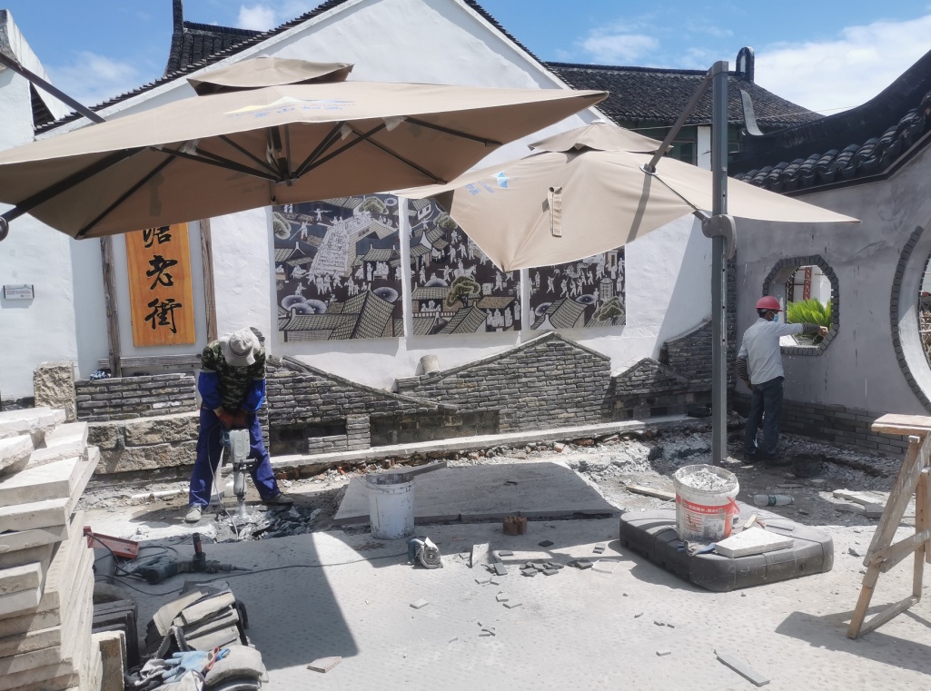 除了山塘老街逐渐恢复人气,明月山塘景区建设也在全面推进。景区内正在打造的英雄广场已经开工,现场工人忙碌地施工。