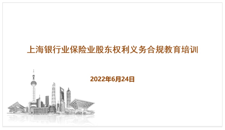 近日,中国银保监会印发《商业银行股东权利义务手册(2022年版)》和《保险公司股东权利义务手册(2022年版)》。为进一步指导推动银行保险机构加强股东股权管理基础建设,积极配合落实监管要求,不断提升银行保险机构经营管理水平,6月24日上午,上海银保监局指导上海市银行同业公会、上海市保险同业公会组织开展上海银行业保险业股东权利义务合规教育培训。